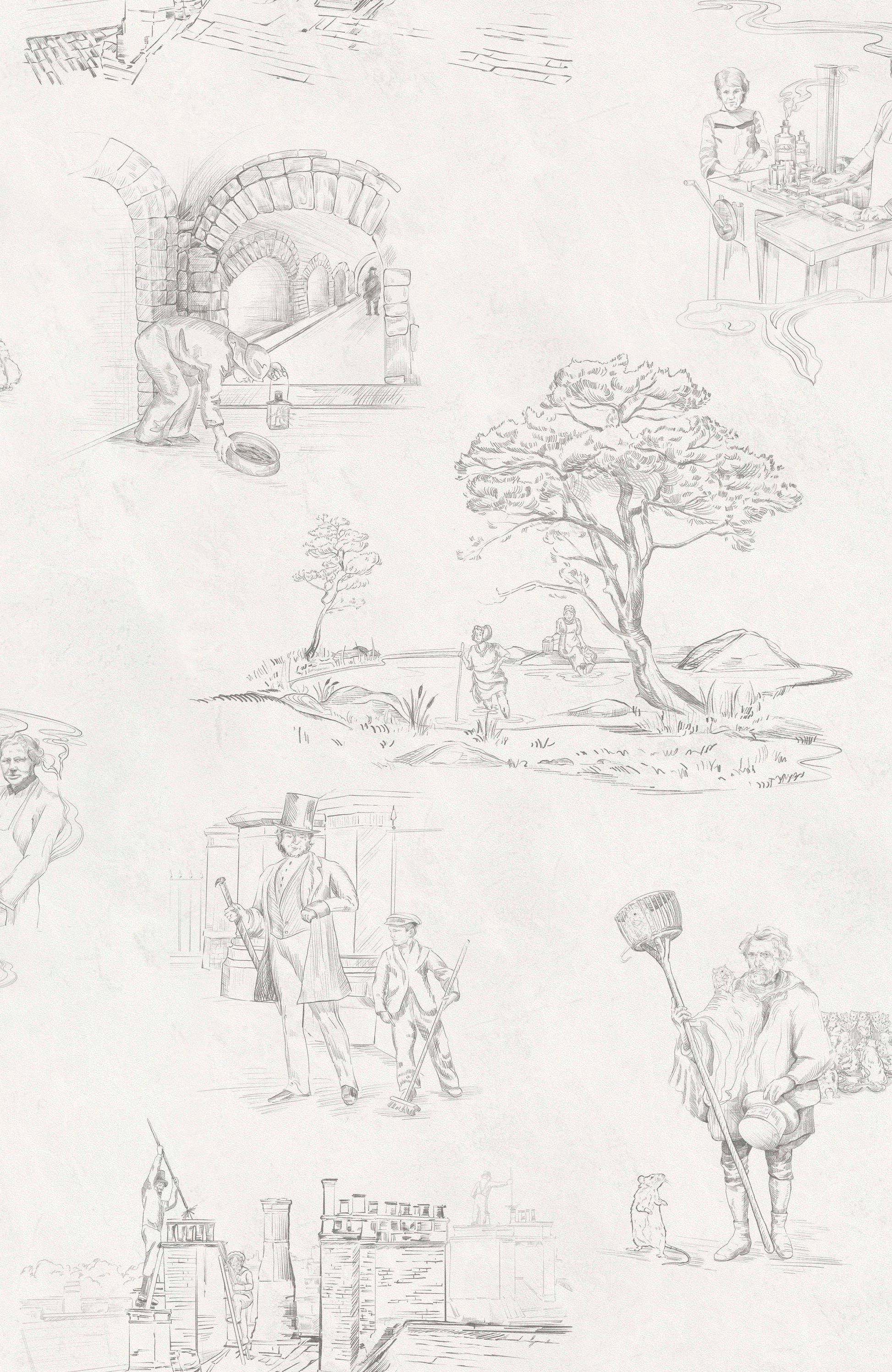 Beautiful, interesting and unique. 'Dirty Work' is a traditional toile design depicting some of the dirtiest jobs of Victorian Britain, from rat catching to chimney sweeping. Available in six colourways, there is enough variety to suit all tastes and environments.